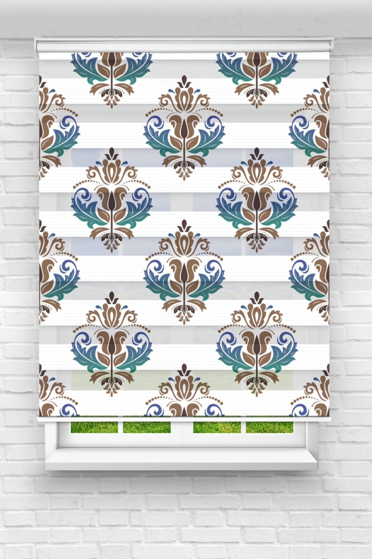 Felicityhome – Mavi Detay Damask Dijital Baskılı Zebra Perde-çocuk Odası Perdesi-zebra Stor Perde