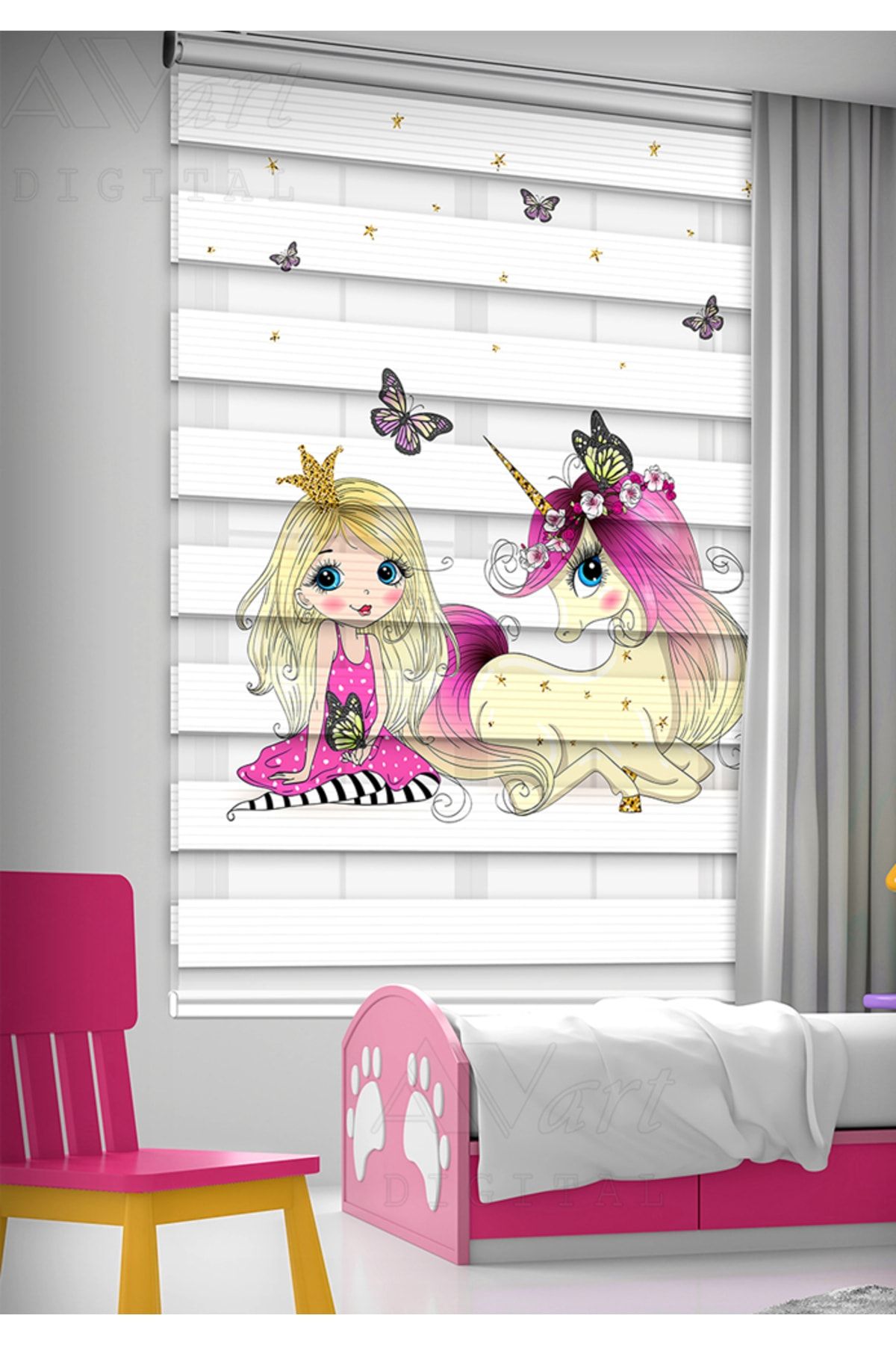 Felicityhome – Prenses Ve Unicorn Baskılı Çocuk Odası Perdesi – Baskılı Zebra Perde