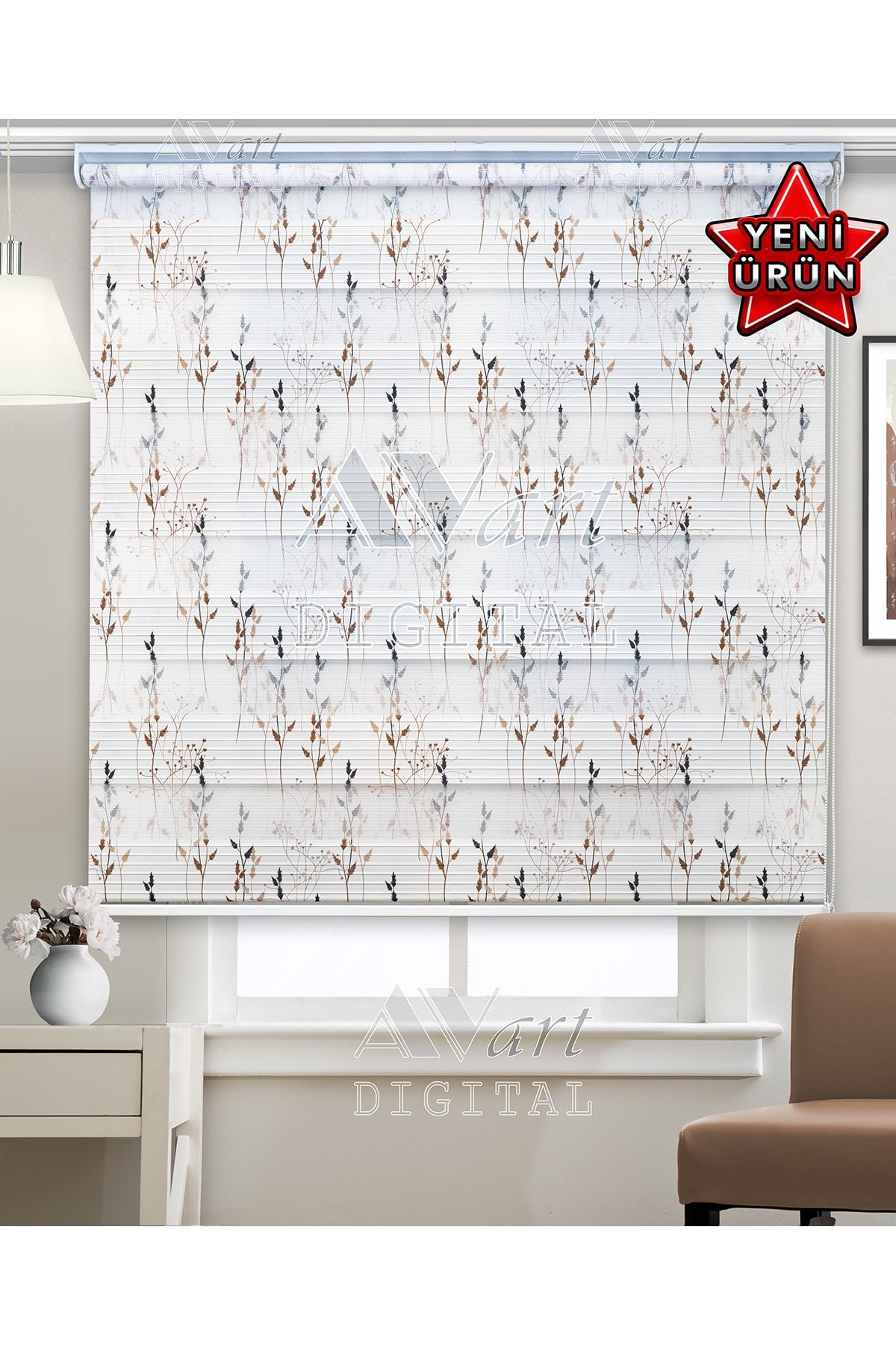 Felicityhome – Kır Bitkileri Baskılı Zebra Perde – (kahverengi – Siyah) Dijital Baskılı Zebra Perde